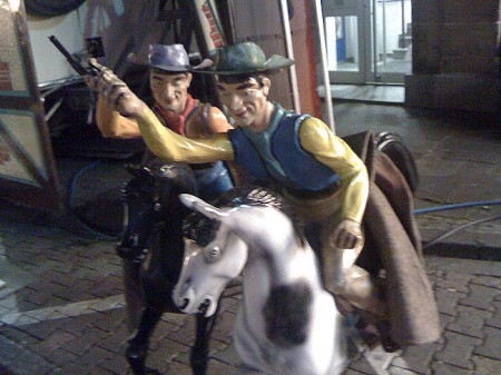 Demontiert 15. Juni 2011GesehenCowboys, Kirmespanne Eine Kirmes war eine Kirmes war eine Kirmes. Alle reiten nun nach Hause. Die Sonne putzen. Frau vermissen. Bohnen essen. Countrysong. Lagerfeuer. Yihaaa!